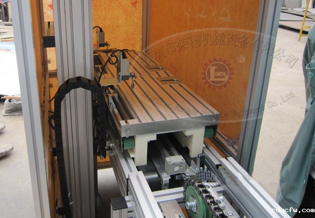 高铁门自动装配流水线技术优势:针对高铁门驱动部分,尺寸长短不一且很沉重,不好定位,设计一套能自动流动工装小车,小车采用一组带手动离合驱动小车,一组被动小车,且产品放到主驱动小车,通过一个升降压板压紧产品的底板(可适应2-6mm的底板),另一组被动小车依产品长度调到合适位置,由升降压板压紧定位好进行产品组装,组装一部分后,由输送带送至下一站,进行下一道工艺组装,一共进行9道工序组装后,产品取下,工装小车由提升机送至下层返回输送带,从另一头起点提升循环使用。