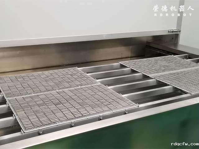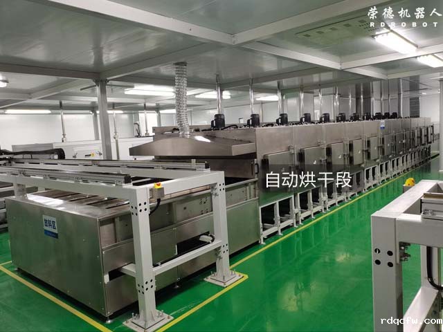 上件→自动除尘→预热→自动喷A面→表干→烘干→水冷→半自动翻面→自动除尘→预热→自动喷B面→表干→烘干→水冷→下件