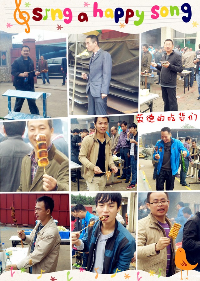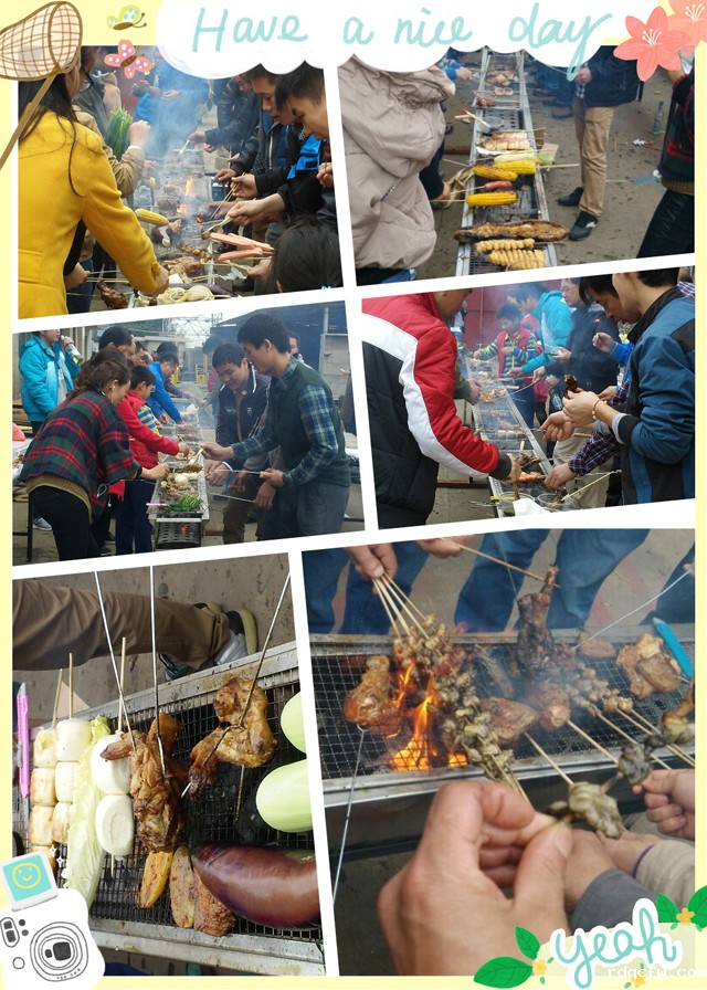 大家爬完山后,就立马回到公司,不大一会儿,整个厂区内炊烟袅袅,此时我们都是饥肠辘辘,迫不及待地围在烧烤架,把早已想吃的食物放到架子上,霎时空气中充满了肉的香味。