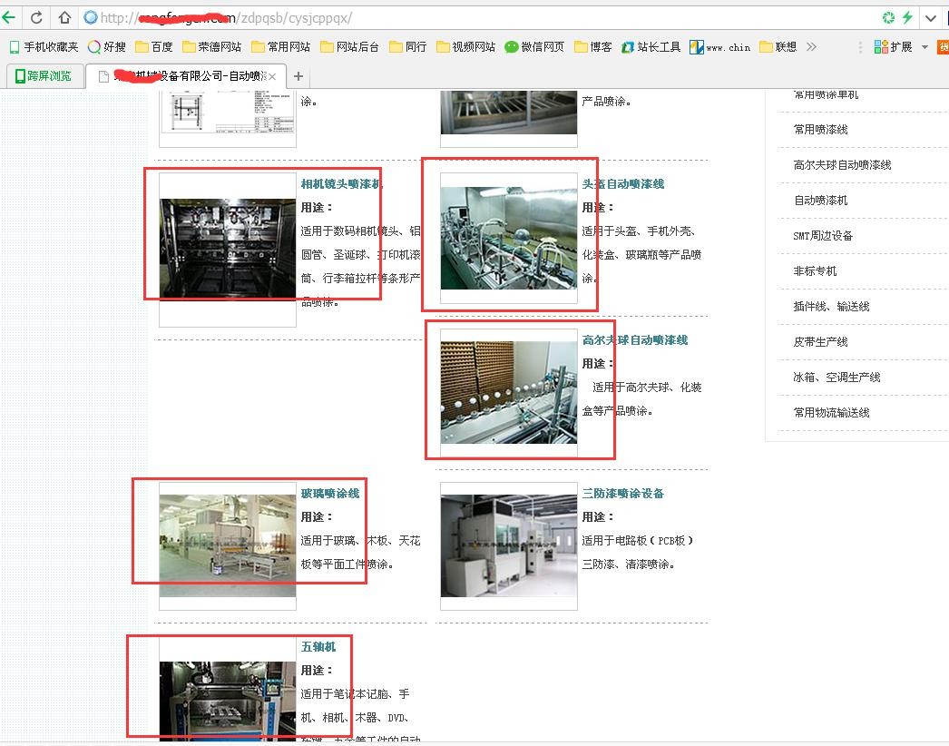 最近小编在分析同行竞争对手的网站时,无意间发现了好几家公司竟然盗用我们网站的自动喷涂设备产品图片,虽然我们网站的图片都有加水印,但同行还是喜欢费心费力的复制我们的图片,然后PS下改成自己的。这样赤裸裸的盗用我们的技术成果的行径是非常可耻的,实在令人气愤。