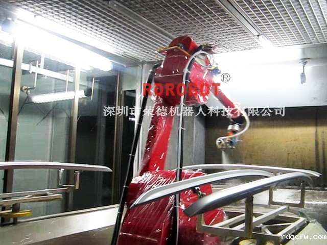 我们给此客户规划的是汽车尾翼机器人自动喷涂线,RDPT02米兰app体育下载官网苹果配套地轨线,机器人落地安装,手腕荷重10KG,工作半径为R2000,可以连续性在线喷涂,适合汽车用品的批量生产。
