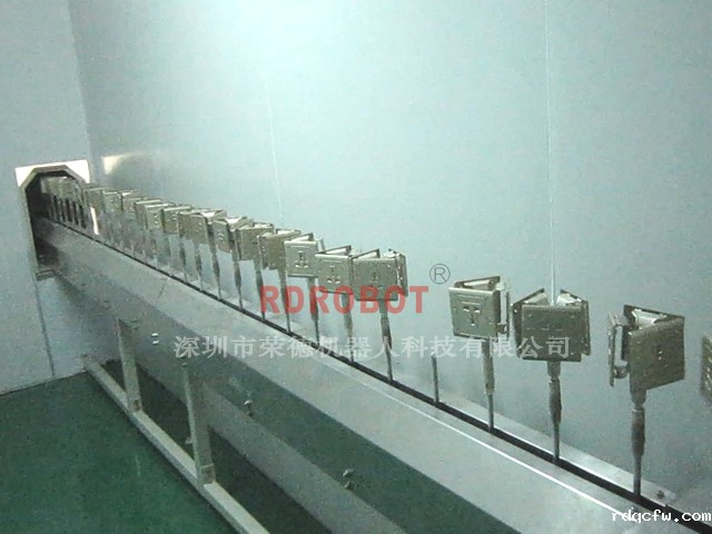 五金工件经过人工/自动除静电除尘装置,消除残留在工件上的静电荷和灰尘,为了使每一工件的各部位都能彻底除尘,输送链在该工位设有自转装置,因此,工件的自动静电除尘是在旋转中进行的,除尘效果良好,静电除尘器为进口产品,特性:良好涂装、控制各环节缺点;