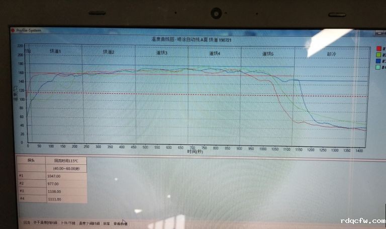 a喷涂生产线测温 预热设定120℃ ,烘烤5分钟后温度在90-120左右 ,没有在±5的温度范围内,烘干线5节烤箱都设定170℃ ,只有 234节烤箱烤箱基本能在160-175这个温度范围内,没有在总烘烤时间设定15分钟, 需有12分钟在165-175这个时间段内 b线测温第一二节烤箱。