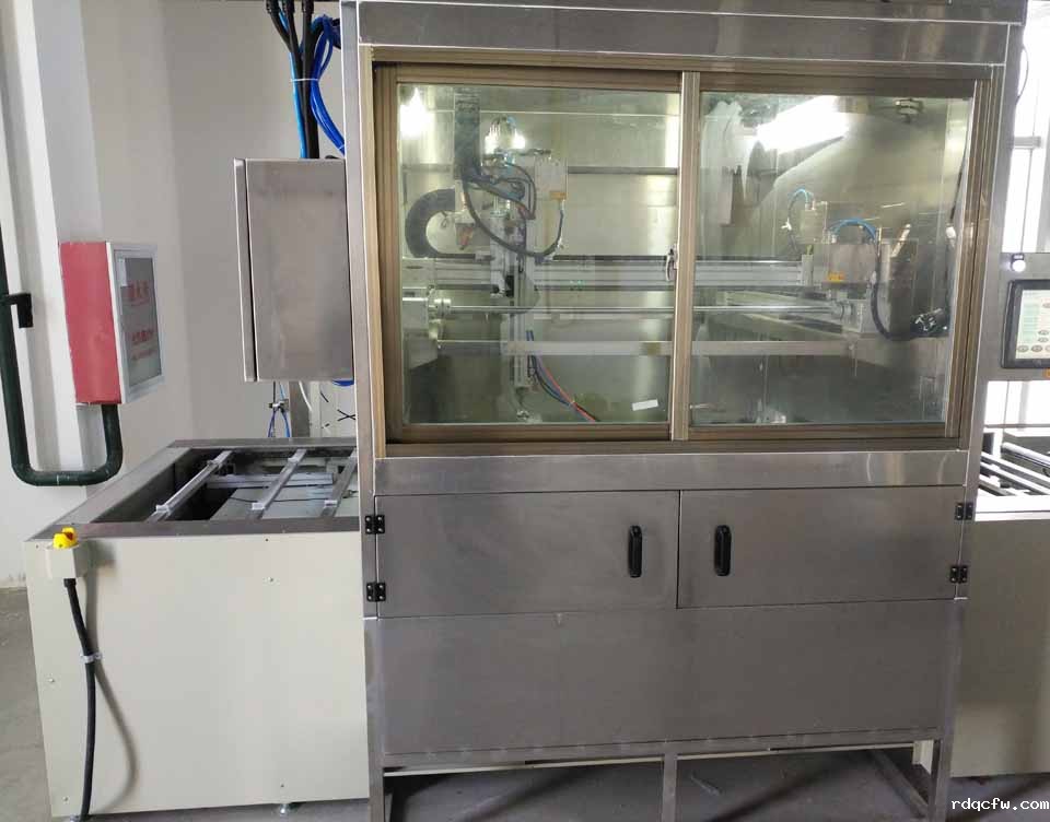 自动喷漆柜类型为水帘式喷漆柜,喷涂窗口尺寸:2000宽×2500深×1900高。,水箱深600,采用2mm厚SUS304不锈钢制作,铺格栅,防止零件掉入水中。配可升降手动旋转台,上铺橡胶板,直径Φ600,承重50kg以上。喷漆柜顶部和侧面安装防爆灯,光照度要求不低于650lux。喷漆柜内壁采用1.5mm厚镀锌钢板制作,平滑不积尘,利于清理,壁板之间在组装时应涂密封胶,立柱用3.0mm厚的钢板制作,并用镀锌型材制成,淌水板及其他与水接触部分均采用SUS304不锈钢板制作,淌水板上部设溢流槽。
