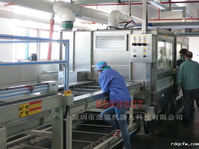 工艺流程:自动打毛→上喷胶输送线→加热AB胶→自动喷胶→自动喷砂→机械手自动抓取到排料线→机械手自动抓取到烘干线→烘干—冷却—下件(非标定制)